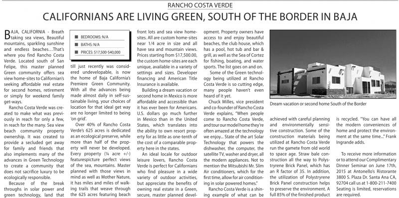CALIFORNIA - Breath taking sea views, Beautiful mountains, sparkling sunshine and endless beaches…That’s where you find Rancho Costa Verde. Located south of San Felipe, this master planned Green community offers sea view home-sites to Californian’s seeking affordable real estate for second homes, retirement or simply for weekend family get-ways.