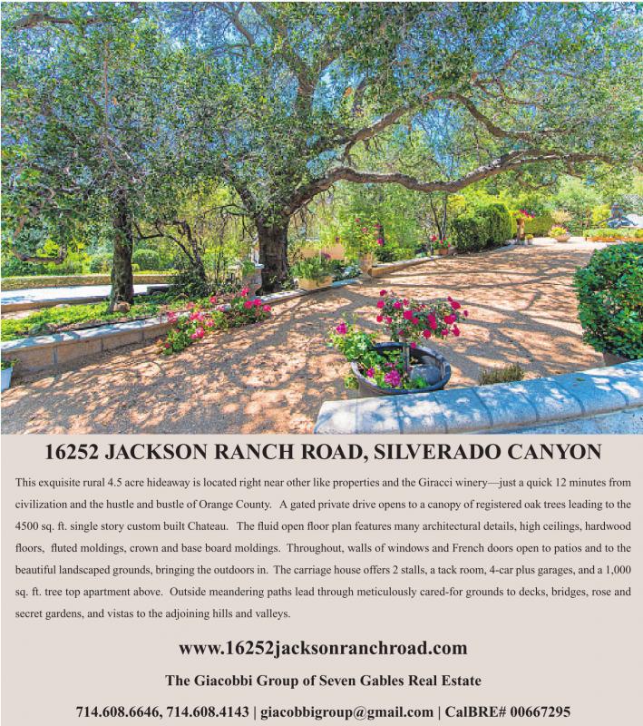 civilization and the hustle and bustle of Orange County. A gated private drive opens to a canopy of registered oak trees leading to the