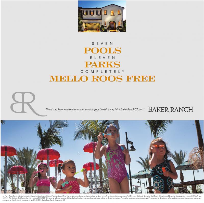 Baker Ranch is being jointlydeveloped by Shea Homes Limited Partnershipand Shea Homes Marketing Company,independent members of the Sheafamilyofcompanies, and Toll Brothers.California Bureau of Real Estate, Shea Homes Marketing Company, CA License #01378646, and Toll Brothers Real Estate, Inc.,CALicense #01206770. Thisisnot an offering where prohibited by law.Products, plans andamenities aresubject to change at anytime.Recreation centerand amenitiesare artist’sconcepts.Modelsdonot reflect racial preference.Brokers must accompany prospectsontheirfirst visit to register to qualify.©2015Shea/Baker Ranch Associates LLC.