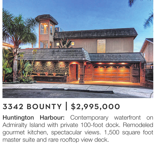 Huntington Harbour: Contemporary waterfront on Admiralty Island with private 100-foot dock. Remodeled gourmet kitchen, spectacular views. 1,500 square foot master suite and rare rooftop view deck.