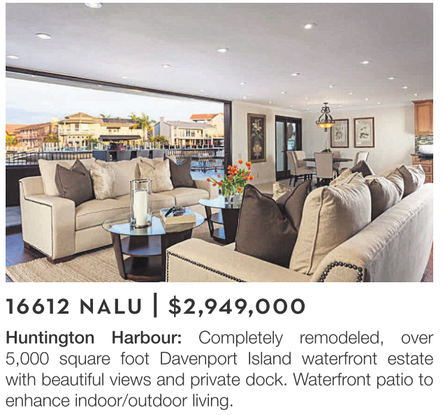 Huntington Harbour: Completely remodeled, over 5,000 square foot Davenport Island waterfront estate with beautiful views and private dock. Waterfront patio to enhance indoor/outdoor living.