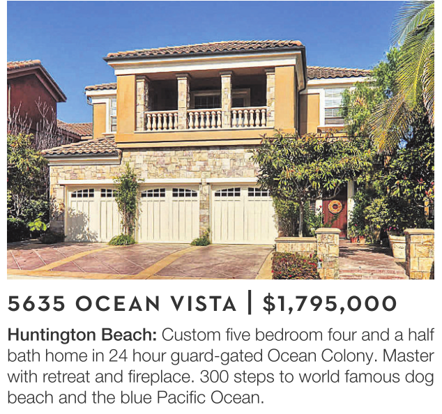 Huntington Beach: Custom five bedroom four and a half bath home in 24 hour guard-gated Ocean Colony. Master with retreat and fireplace. 300 steps to world famous dog beach and the blue Pacific Ocean.
