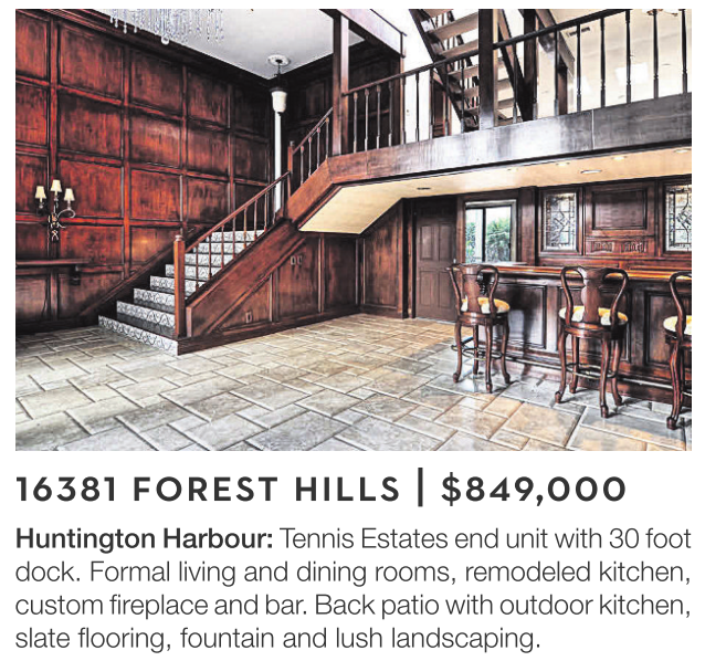 Huntington Harbour: Tennis Estates end unit with 30 foot dock. Formal living and dining rooms, remodeled kitchen, custom fireplace and bar.Back patio with outdoor kitchen, slate flooring, fountain and lush landscaping.