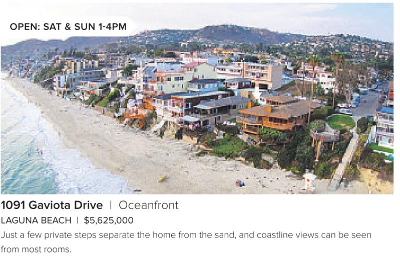 LAGUNA BEACH | $5,625,000 Just a few private steps separate the home from the sand, and coastline views can be seen from most rooms.