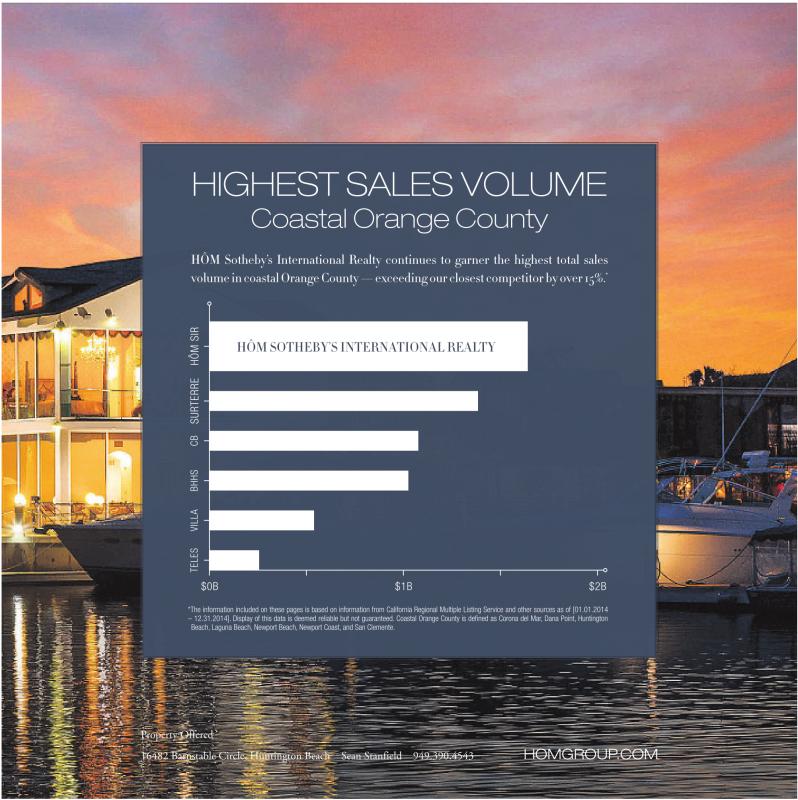 HÔM Sotheby’s International Realty continues to garner the highest total sales volume in coastal Orange County —exceeding our closest competitor by over 15%. *