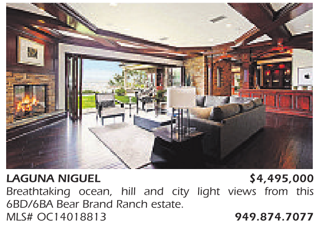LAGUNA NIGUEL $4,495,000 Breathtaking ocean, hill and city light views from this 6BD/6BA Bear Brand Ranch estate. MLS# OC14018813 949.874.7077
