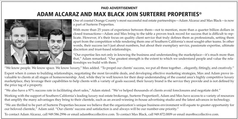One of coastal Orange County’s most successful real estate partnerships—Adam Alcaraz and Max Black—is now a part of Surterre Properties.