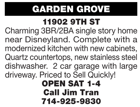 11902 9TH ST Charming 3BR/2BA single story home near Disneyland. Complete with a modernized kitchen with new cabinets, Quartz countertops, new stainless steel dishwasher. 2 car garage with large driveway. Priced to Sell Quickly!