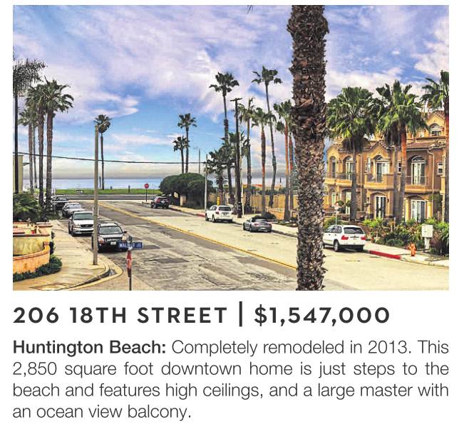 Huntington Beach: Completely remodeled in 2013. This 2,850 square foot downtown home is just steps to the beach and features high ceilings, and a large master with an ocean view balcony.