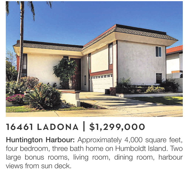 Huntington Harbour: Approximately 4,000 square feet, four bedroom, three bath home on Humboldt Island. Two large bonus rooms, living room, dining room, harbour views from sun deck.