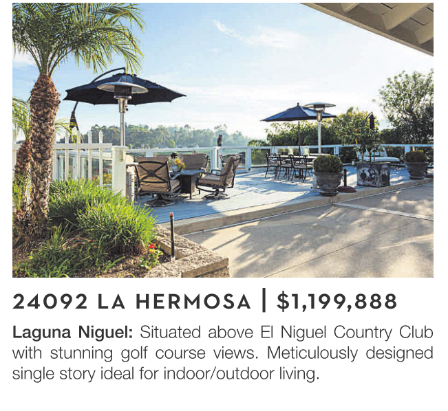 Laguna Niguel: Situated above El Niguel Country Club with stunning golf course views. Meticulously designed single story ideal for indoor/outdoor living.