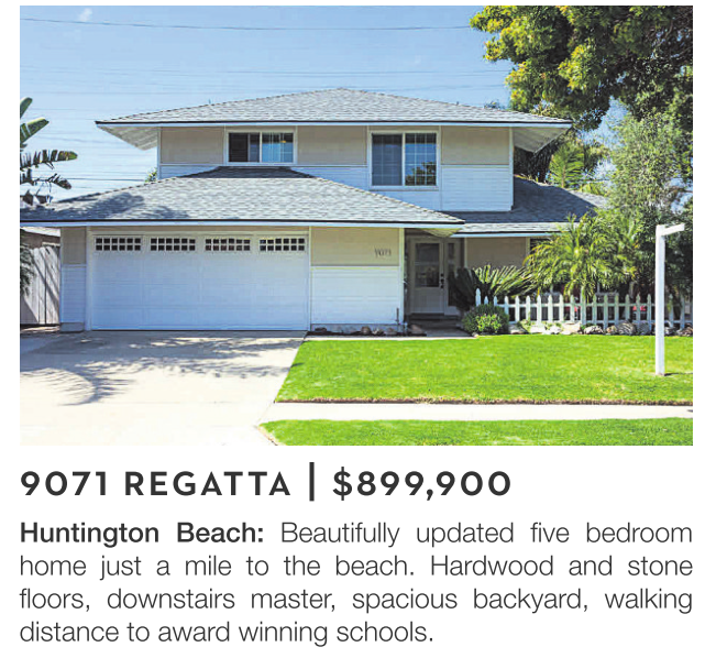 Huntington Beach: Beautifully updated five bedroom home just a mile to the beach. Hardwood and stone floors, downstairs master, spacious backyard, walking distance to award winning schools.