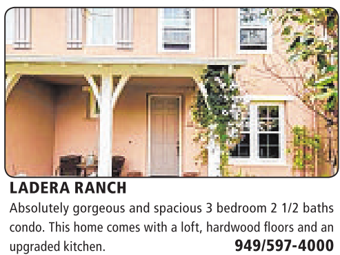LADERA RANCH Absolutely gorgeous and spacious 3 bedroom 2 1/2 baths condo. This home comes with aloft, hardwood floors and an upgraded kitchen. 949/597-4000