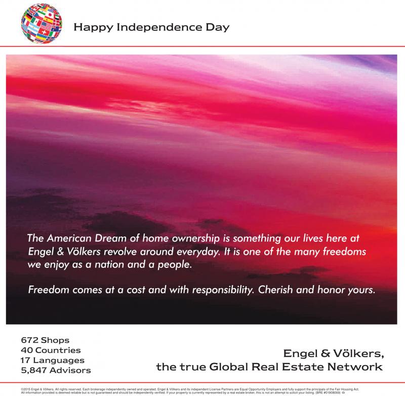The American Dream of home ownership is something our lives here at Engel & Völkers revolve around everyday. It is one of the many freedoms we enjoy as a nation and a people.