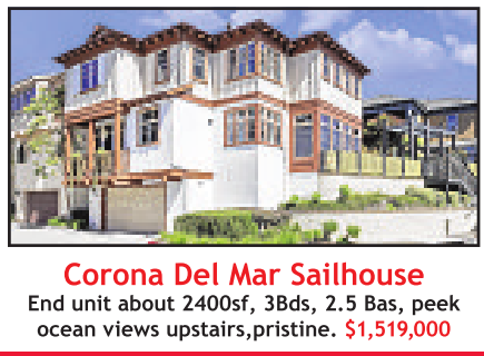 Corona Del Mar Sailhouse End unit about 2400sf, 3Bds, 2.5 Bas, peek
