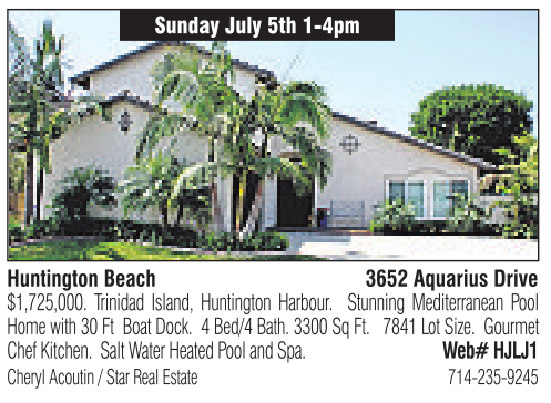 Home with 30 Ft Boat Dock. 4Bed/4 Bath. 3300 Sq Ft. 7841 LotSize. Gourmet $1,725,000. Trinidad Island, Huntington Harbour. Stunning Mediterranean Pool