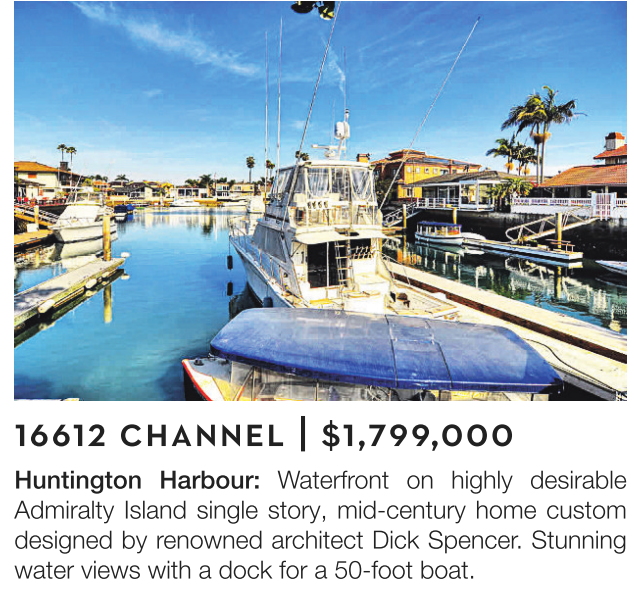 Huntington Harbour: Waterfront on highly desirable Admiralty Island single story, mid-century home custom designed by renowned architect Dick Spencer. Stunning water views with a dock for a 50-foot boat.