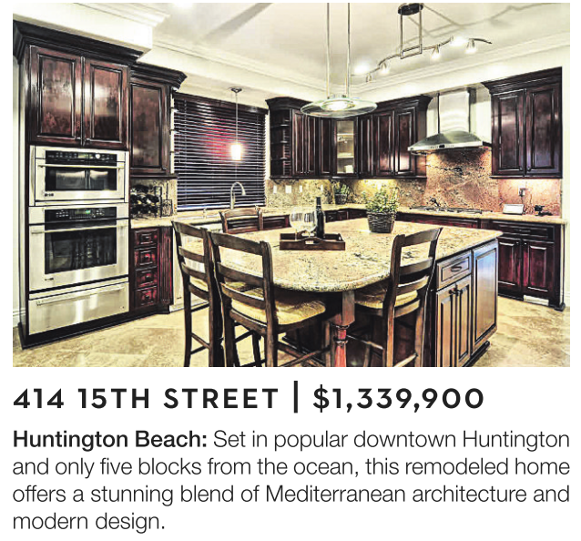 Huntington Beach: Set in popular downtown Huntington and only five blocks from the ocean, this remodeled home offers a stunning blend of Mediterranean architecture and modern design.