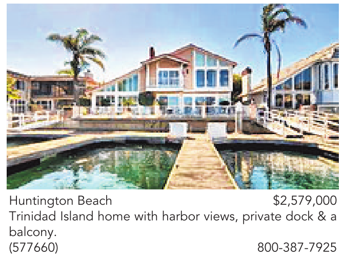 Huntington Beach $2,579,000 Trinidad Island home with harbor views, private dock & a balcony. (577660) 800-387-7925