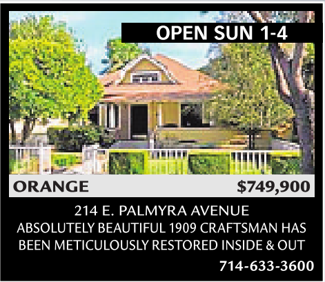 214 E.PALMYRA AVENUE ABSOLUTELY BEAUTIFUL 1909 CRAFTSMAN HAS BEEN METICULOUSLY RESTORED INSIDE &OUT 714-633-3600