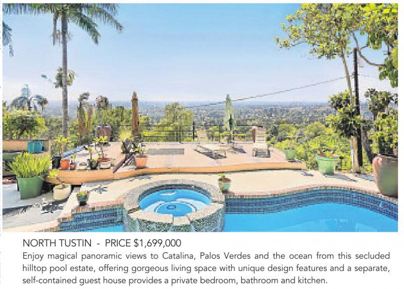 Enjoy magical panoramic views to Catalina, Palos Verdes and the ocean from this secluded hilltop pool estate, offering gorgeous living space with unique design features and a separate, self-contained guest house provides a private bedroom, bathroom and kitchen.