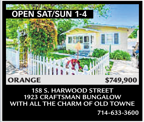158 S. HARWOOD STREET 1923 CRAFTSMAN BUNGALOW WITH ALL THE CHARM OF OLD TOWNE 714-633-3600