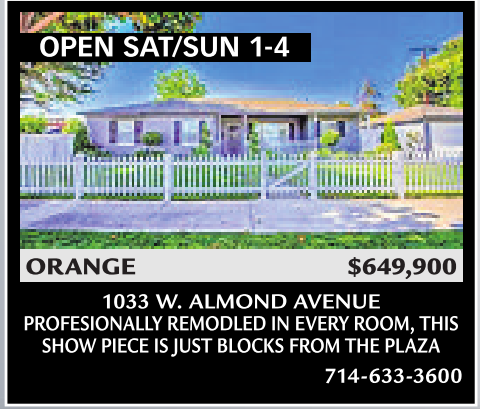 1033 W. ALMOND AVENUE PROFESIONALLY REMODLED IN EVERY ROOM, THIS SHOW PIECE ISJUST BLOCKS FROM THE PLAZA 714-633-3600