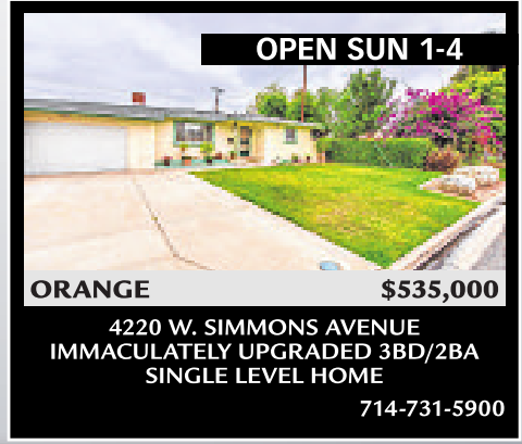 4220 W. SIMMONS AVENUE IMMACULATELY UPGRADED 3BD/2BA SINGLE LEVEL HOME 714-731-5900