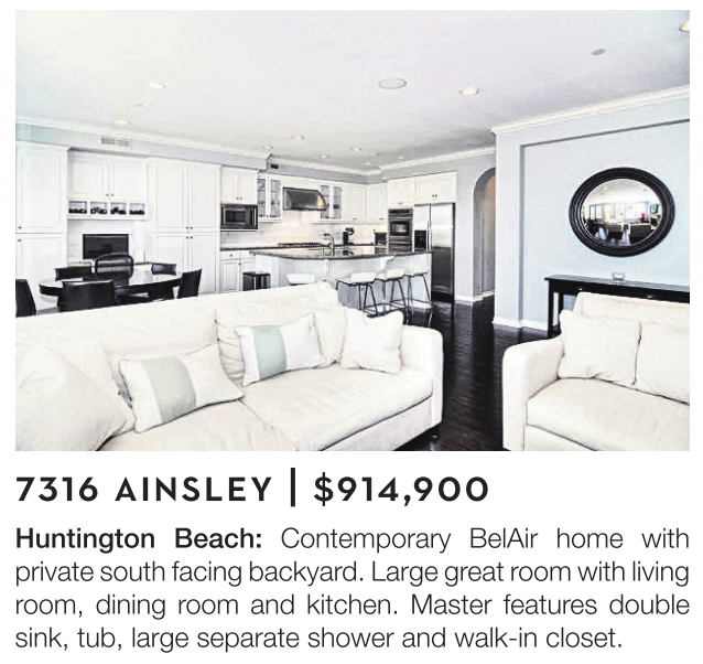 Huntington Beach: Contemporary BelAir home with private south facing backyard. Large great room with living room, dining room and kitchen. Master features double sink, tub, large separate shower and walk-in closet.