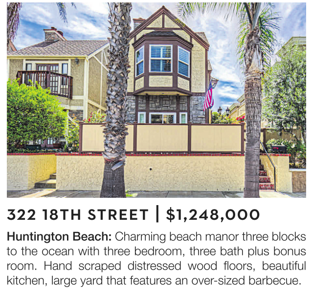 Huntington Beach: Charming beach manor three blocks to the ocean with three bedroom, three bath plus bonus room. Hand scraped distressed wood floors, beautiful kitchen, large yard that features an over-sized barbecue.