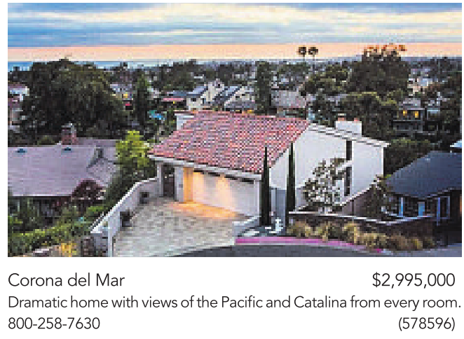 Corona del Mar $2,995,000 Dramatic home with views of the Pacific and Catalina from every room. 800-258-7630 (578596)