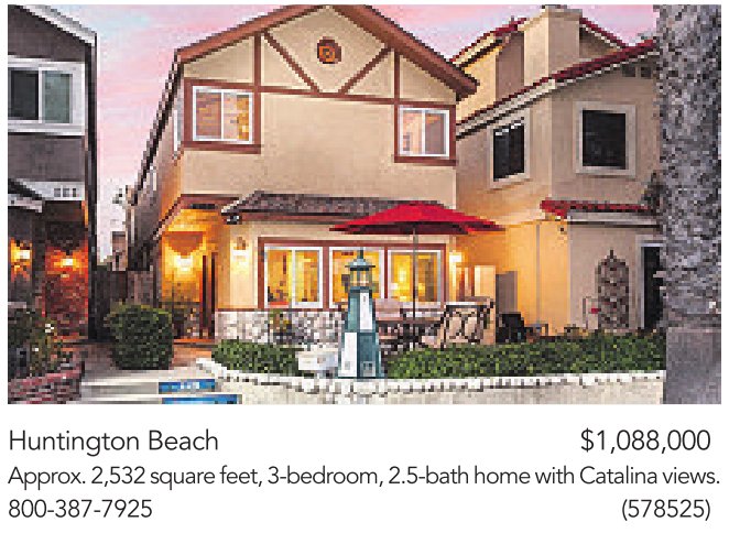 Huntington Beach $1,088,000 Approx. 2,532 square feet, 3-bedroom, 2.5-bath home with Catalina views. 800-387-7925 (578525)