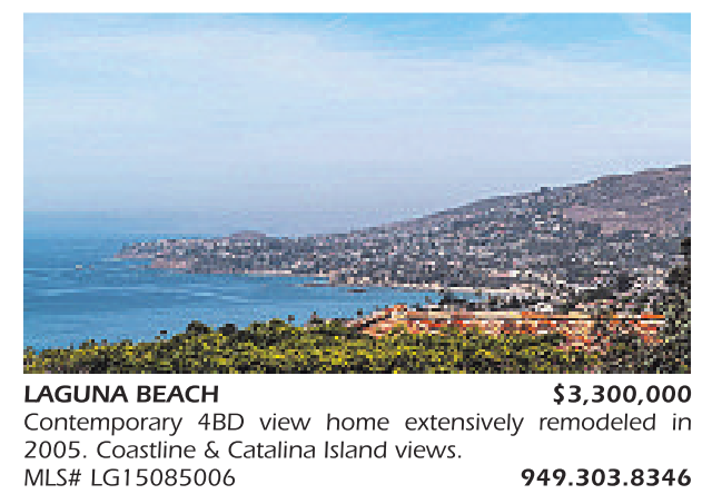 LAGUNA BEACH $3,300,000 Contemporary 4BD view home extensively remodeled in 2005. Coastline & Catalina Island views. MLS# LG15085006 949.303.8346