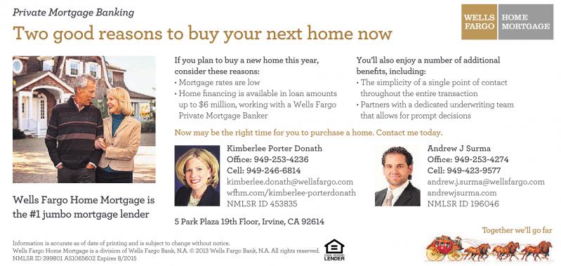If you plan to buy a new home this year, consider these reasons: • Mortgage rates are low • Home financing is available in loan amounts up to $6 million, working with a Wells Fargo Private Mortgage Banker