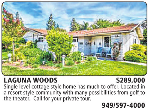 LAGUNA WOODS $289,000 Single level cottage style home has much tooffer. Located in aresort style community with many possibilities from golf to thetheater. Callfor your privatetour.