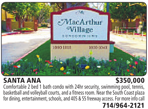 basketball and volleyball courts, andafitnessroom. Near theSouth Coastplaza fordining, entertainment, schools,and 405&55freeway access.For more infocall 714/964-2121
