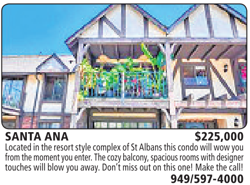 SANTA ANA $225,000 Located in theresortstyle complexofStAlbansthis condowillwow you from themoment youenter.The cozy balcony,spacious rooms with designer toucheswill blow youaway.Don’t missout on this one!Makethe call!