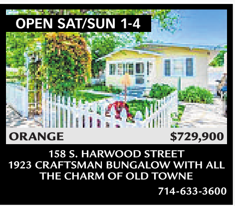 158 S. HARWOOD STREET 1923 CRAFTSMAN BUNGALOW WITH ALL THE CHARM OF OLD TOWNE 714-633-3600