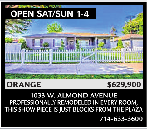 1033 W. ALMOND AVENUE PROFESSIONALLY REMODELED IN EVERY ROOM, THIS SHOW PIECE ISJUST BLOCKS FROM THE PLAZA 714-633-3600