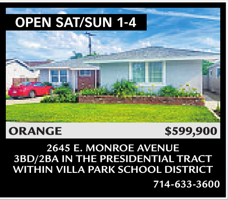2645 E. MONROE AVENUE 3BD/2BA IN THE PRESIDENTIAL TRACT WITHIN VILLA PARK SCHOOL DISTRICT 714-633-3600