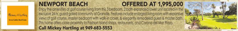 views of golf course, master bedroom with walk-in closet, & elegantly remodeled guest & master bath. This home offers close proximity to Fashion Island shops, restaurants, and Corona del Mar Plaza.