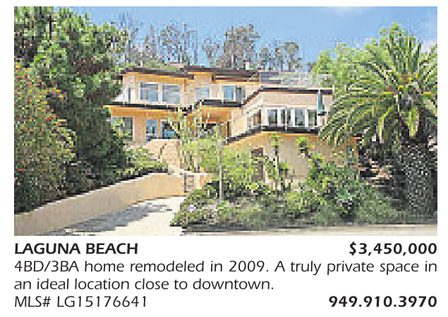 LAGUNA BEACH $3,450,000 4BD/3BA home remodeled in 2009. A truly private space in an ideal location close to downtown. MLS# LG15176641 949.910.3970