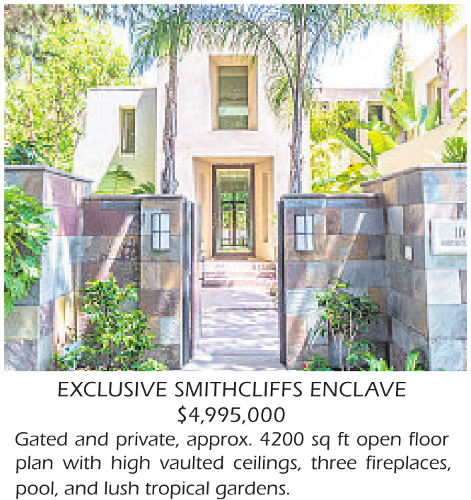 EXCLUSIVE SMITHCLIFFS ENCLAVE $4,995,000 Gated and private, approx. 4200 sq ft open floor plan with high vaulted ceilings, three fireplaces,