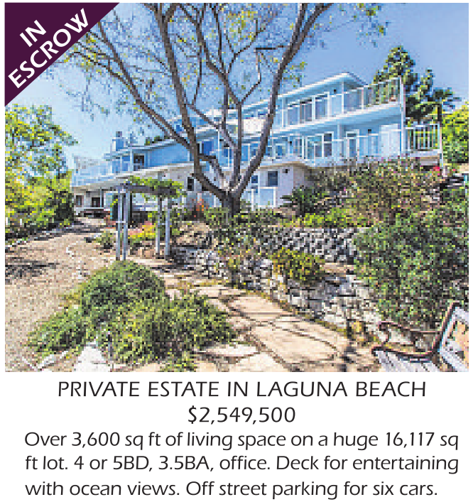 PRIVATE ESTATE IN LAGUNA BEACH $2,549,500 Over 3,600 sq ft of living space on a huge 16,117 sq ft lot. 4 or 5BD, 3.5BA, office. Deck for entertaining