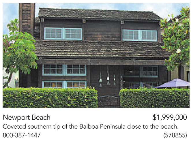 Newport Beach $1,999,000 Coveted southern tip of the Balboa Peninsula close to the beach. 800-387-1447 (578855)