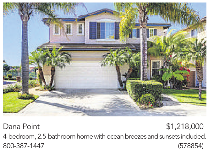 Dana Point $1,218,000 4-bedroom, 2.5-bathroom home with ocean breezes and sunsets included. 800-387-1447 (578854)
