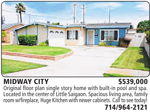 MIDWAY CITY $539,000 Original floor plan single story home with built-in pool and spa.