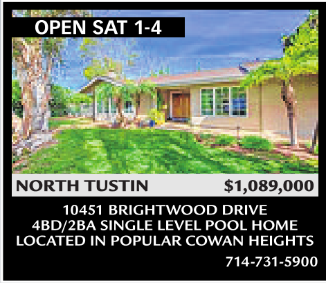 10451 BRIGHTWOOD DRIVE 4BD/2BA SINGLE LEVEL POOL HOME LOCATED IN POPULAR COWAN HEIGHTS 714-731-5900