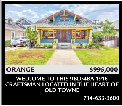 WELCOME TO THIS 9BD/4BA 1916 CRAFTSMAN LOCATED IN THE HEART OF OLD TOWNE 714-633-3600