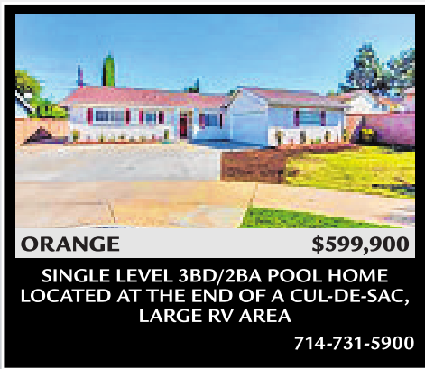 SINGLE LEVEL 3BD/2BA POOL HOME LOCATED AT THE END OF A CUL-DE-SAC, LARGE RV AREA 714-731-5900